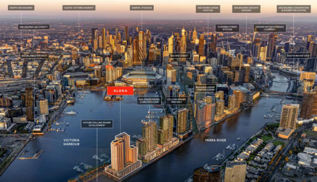 Aluna·Collins Wharf坐落于九大豪宅湾区的墨尔本Victoria Harbour核心位置,位于Yarra河与Victoria港交汇处,是融合城市活力与水岸宁静的建筑艺术杰作。